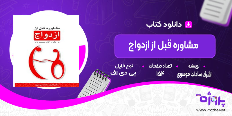 📕 وب سایت پروژه نت کتاب مشاوره قبل از ازدواج اشرف سادات موسوی این کتاب راهنمایی جامع برای زوجهای جوان و مشاوران خانواده است که با رویکردی علمی و عملی به موضوع ازدواج میپردازد. نویسنده با زبانی روان و مثالهای واقعی، به بررسی معیارهای انتخاب همسر، شناخت تفاوتهای فردی و مهارتهای ارتباطی میپردازد. این اثر با هدف پیشگیری از تعارضهای زناشویی، به تصمیمگیری آگاهانه و ازدواجی پایدار کمک میکند.برای دانلود و بهرهبرداری از این منبع ارزشمند، با سایت پروژه نت همراه باشید.